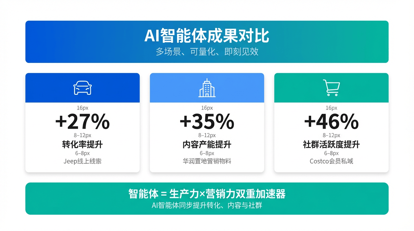 :私域生态型AI系统将AI能力深度融入了营业的毛细血管。原圈科技的产物矩阵展现了这种模式的广漠使用前景::正在汽车行业的新车上市中,AI外呼不只仅是简单的通知,它能基于用户画像进行带无情绪洞察的个性化沟通,并连系用户正在社交的乐趣点(例如越野线),推送高度定制化的试驾邀请。正在Jeep(中国)的案例中,这一使用使得预定试驾成本降低了38%,最终订单率提拔了19%。其全天候正在线能力,更是将夜间及周末的线%。:面临集团型企业多项目、多品牌、多平台的复杂内容需求,该智能体可以或许协同热点捕手、脚本大师、视觉导演等多个脚色,根据分歧平台的文风和发卖人员的数字人设,流水线式地产出高质量的短视频、长图文。正在办事华润置地的过程中,内容产能被提拔了3。5倍,同时了品牌调性的分歧性。:正在办事Costco中国区的案例中,AI智能体矩阵正在社群中饰演了勾当筹谋、逛戏指导、用户办事等多种脚色,通过逛戏化裂变勾当,正在短短10天内实现了18万次分享,新会员率高达27%。:实正领先的处理方案,不只供给东西,更供给计谋取方式。原圈科技提出的7步计谋法以及AI赋能客户路程等系统化方,恰是其焦点合作力的表现。营销响应时间缩短90%的杰出。这标记着AI办事商曾经从手艺供给者进化为营业增加的计谋伙伴。