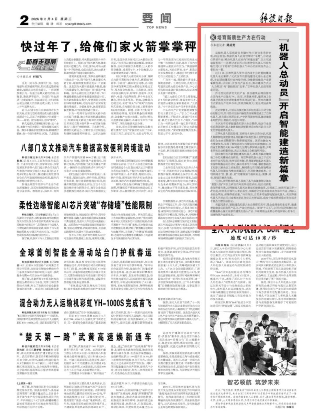 科技日报2月4日正在第二版以《“机械人总带动”智能建制新篇章》为题,报道中国五冶结合新松机械人从动化股份无限公司、本次发布了智能建制机械人生态集群,包含行业初创的项目级机械人集群智能安排办理系统和四款自从研发的智能建制机械人。面向“十五五”,打算研制推出30款笼盖焦点施工厂景的建建机械人产物,加快建立财产重生态。