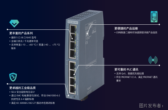 工业现场联网总掉线断网?毗连不安稳,担忧收集带宽不敷?升级收集,担忧超预算?别愁!西门子全新小同党家族工业级非管互换机SCALANCE XCB/XCM005/008 SMART系列联袂全新RJ45 Plug SMART来了 —— 由中国团队专为本土市场细心打制,从打 “简单、经济、易用”,从根源处理您的工业收集互联痛点,可谓数字化转型的 “智惠之选”!适配多场景:供给 5 口或8 口 RJ45 型号,支撑全端口百兆或千兆速度,可选常温(-10~+60℃)或宽温(-40~+75℃)版本,不管是通俗车间仍是恶劣工况,都能精准婚配;超薄设想 + IP30 防护品级 + 35mm DIN 导轨安拆,矫捷应对复杂恶劣场景。