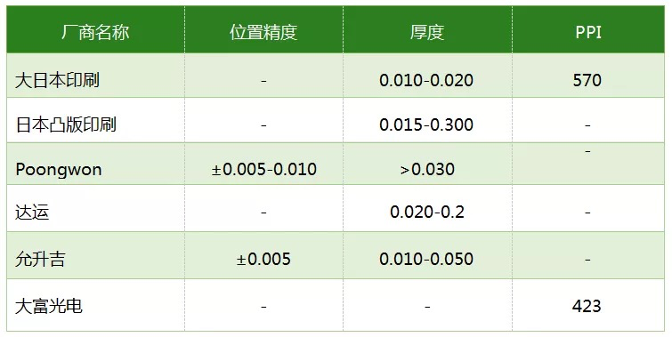 目前消费者越来越关心屏幕的PPI(像素密度),特别是VR的面世更是对PPI(像素密度)提出了严苛的要求,意味着FMM必需冲破高分辩率难题。然而以DNP(大日本印刷)为代表的的蚀刻工艺,本身就存正在不成跨越的宽厚比的问题,添加精细的开孔意味着更薄的材料厚度,然而材料厚度的降低会导致各类各样的问题,例如加工难度、材料本身平均性的问题。蚀刻工艺理论上的最小启齿为25μm,取VR显示屏最低物理分辩率的要求仍然存正在距离。可是从现阶段的FMM构成的财产链来看,上逛材料INVAR(10~20μm厚)只要日立金属能够出产,而中逛次要是日韩和中国地域,中国并没有可以或许量产FMM的公司,可是中国倒是需求量最大的市场。正在2018年以前,因为日立跟DNP(大日本印刷)是合做,而DNP(大日本印刷)取三星是签订了垄断性合约(供给10~20μm厚的FMM)。到了2018年三星跟DNP(大日本印刷)垄断合约到期,这也才有了DNP(大日本印刷)曾经取BOE(京东方)告竣和谈, DNP(大日本印刷)会逐渐向BOE(京东方) 供给WQHD 级手机用的FMM(约30μm厚)。DNP(大日本印刷)取TOPPAN(日本凸版印刷)无限的产能无法满脚浩繁面板制制商的需求,复杂的市场促使上逛材料企业积极参取。2018年联创光电投资10亿元的FMM出产项目落户南昌市赣江新区,投产后无望打破FMM依赖进口的场合排场,鞭策国内OLED显示手艺的成长。高端平面金属丝网,使用于高细密丝网印刷,材质为镍、镍合金,尺寸精度±0。002mm,精度±0。020mm,厚度0。010mm~0。050mm,最大尺寸500mm×700mm。电铸3D模板:用于SMT印刷,材质为Ni、Ni Alloy,尺寸精度±0。005mm,精度±0。030mm,最大阶梯度90°,最大阶梯高度3。000mm。